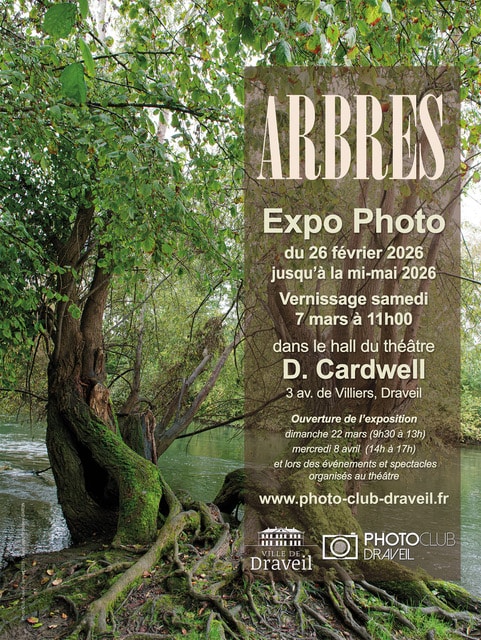 Pour une période de trois mois, du 26 février à la mi-mai 2026, le Photo Club Draveil expose dans le hall du théâtre Donald Cardwell (3 avenue de Villiers, Draveil) une nouvelle série photographique intitulée « Arbres ».
